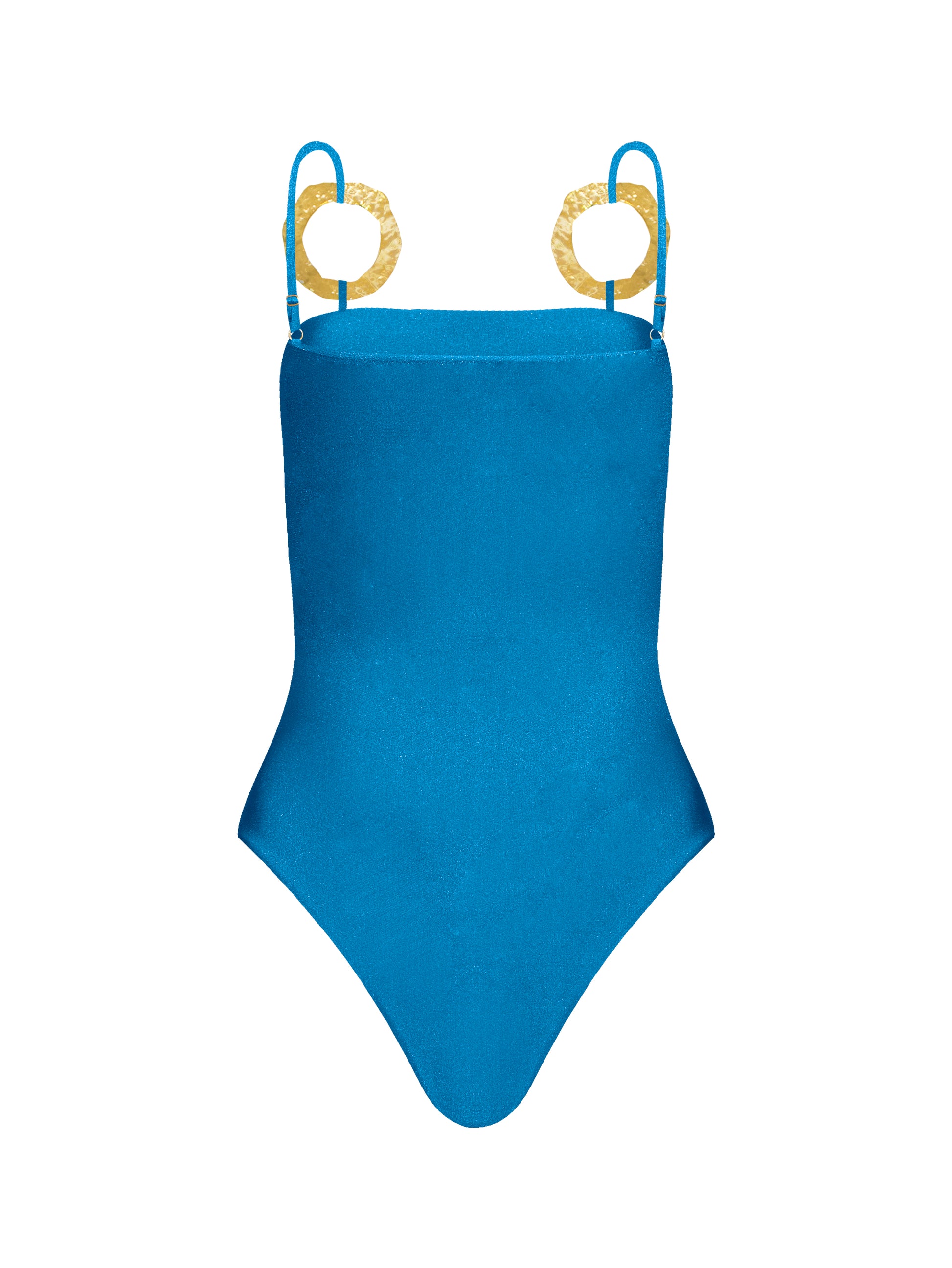 Enterizo elaborado en lycra lurex de alta compresión, forrado en la misma tela para ofrecer mayor soporte y una silueta más estilizada. Incorpora herrajes de alta calidad. Puede usarse como vestido de baño o como prenda exterior. Diseño de tiro medio, panty de cobertura regular, tiras ajustables y detalle de cut-out en la parte inferior del busto.